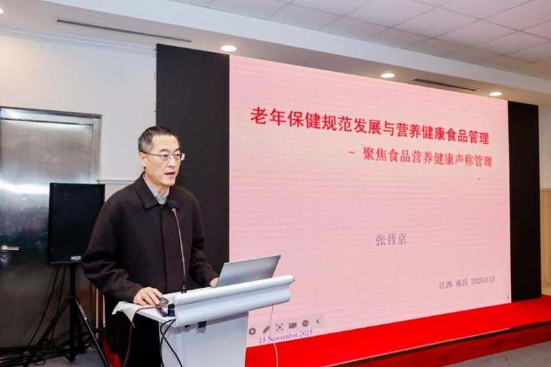 国家市场监督管理总局特殊食品司原稽查专员张晋京作《老年保健规范发展与营养健康食品管理》报告。
